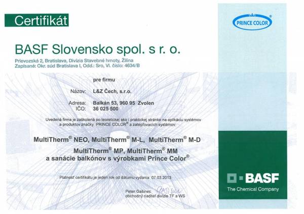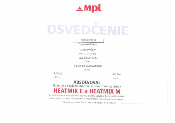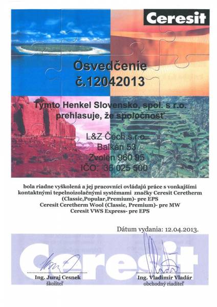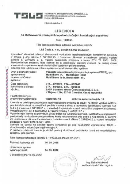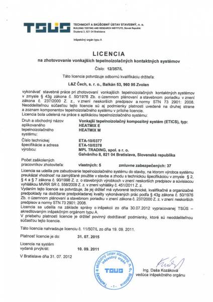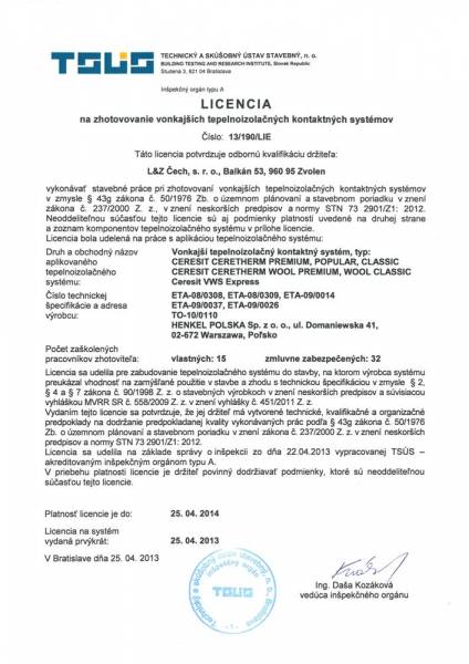 Spoločnosť L&Z Čech je držiteľom nasledovných licencií a certifikátov: